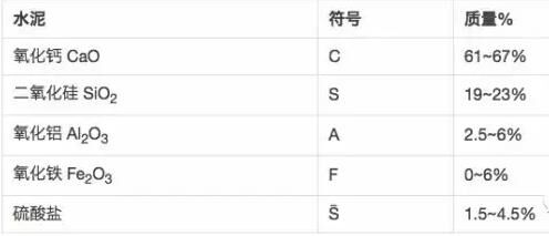 這里是硅酸鹽水泥熟料(水泥的干粉版本)的一般配方。配比隨應(yīng)用變化,取決于水泥所需的材料性能。