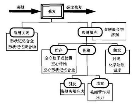 仿生自愈合法是一種新的裂縫處理方法,它模仿生物組織對受創(chuàng)傷部位自動分泌某種物質,而使創(chuàng)傷部位得到愈合的機能,在混凝土的傳統(tǒng)組分中加入某些特殊組分(如含粘結劑的液芯纖維或膠囊),在混凝土內部形成智能型仿生自愈合神經網(wǎng)絡系統(tǒng),當混凝土出現(xiàn)裂縫時分泌出部分液芯纖維可使裂縫重新愈合。