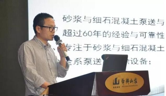 ▼ 中聯(lián)重科干混部技術總監(jiān)吳漫天做“預拌砂漿3.0”的演講;