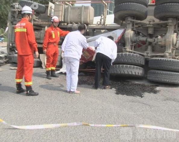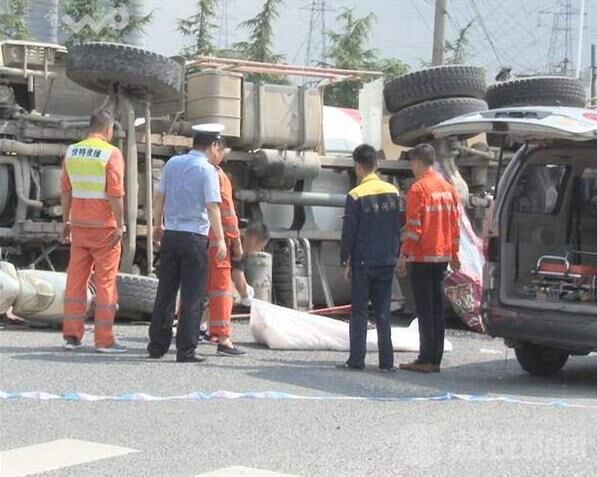 事故發(fā)生之后,南京交警十大隊(duì)民警迅速趕到現(xiàn)場(chǎng),設(shè)置路障、保護(hù)現(xiàn)場(chǎng),呼叫救護(hù)車(chē)過(guò)來(lái)救助傷者。荔枝新聞通訊員在現(xiàn)場(chǎng)看到,一輛大型水泥攪拌車(chē)側(cè)翻在紅綠燈路口中間,車(chē)頭頂著一輛踏板電瓶車(chē),騎車(chē)的男子被攪拌車(chē)壓在底下,已經(jīng)死亡。肇事的水泥攪拌車(chē)駕駛員也投案自首。