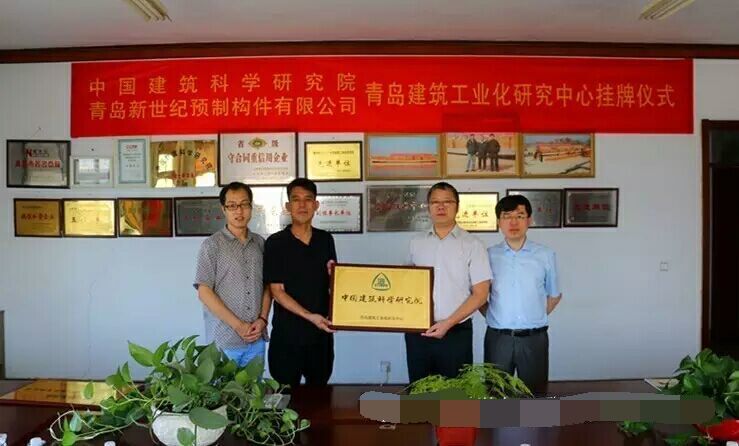 2016年8月26日,中國建筑科學(xué)研究院把建筑工業(yè)化研究中心落戶青島,并和青島新世紀(jì)預(yù)制構(gòu)件有限公司共同成立了青島建筑工業(yè)化研究中心。該研究中心給青島新世紀(jì)預(yù)制構(gòu)件有限公司實施建筑工業(yè)化技術(shù)提供有力的技術(shù)支撐。