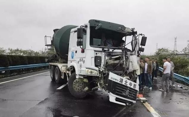 沒(méi)想到,隨后而來(lái)的一輛水泥攪拌車,經(jīng)過(guò)事發(fā)路段,也因?yàn)榈缆窛窕?,視線不佳,來(lái)不及避讓事故車輛,駕駛員猛打方向,直接撞上了邊護(hù)欄,巨大的沖擊力讓水泥攪拌車直接來(lái)了個(gè)近180度的大轉(zhuǎn)彎,逆向停在了兩條行車道之間,車輛前臉和駕駛室受損嚴(yán)重,所幸駕駛員只是受了輕傷。由于事故車輛將兩條行車道全部占據(jù),一時(shí)間二廣高速車輛出現(xiàn)滯留。