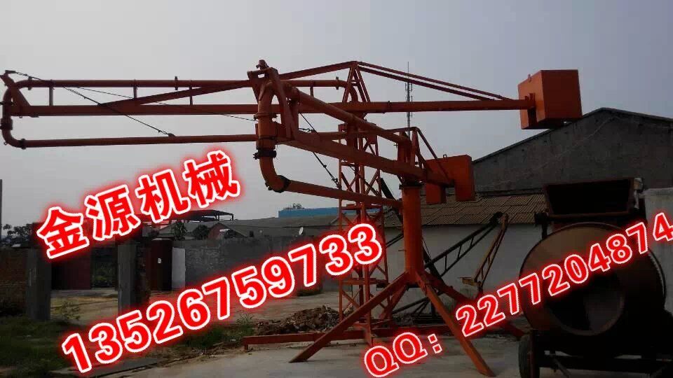 河南金源布料機桿采用回轉,臂架式布料結構,配用125MM輸送管,360度回轉,整機手動操作。具有結構簡單,強度、剛性可靠,操作簡單,靈活,維修方便等特點,與混凝土泵配套使用可廣泛的應用于民用與工業(yè)建筑的混凝土澆注工程中