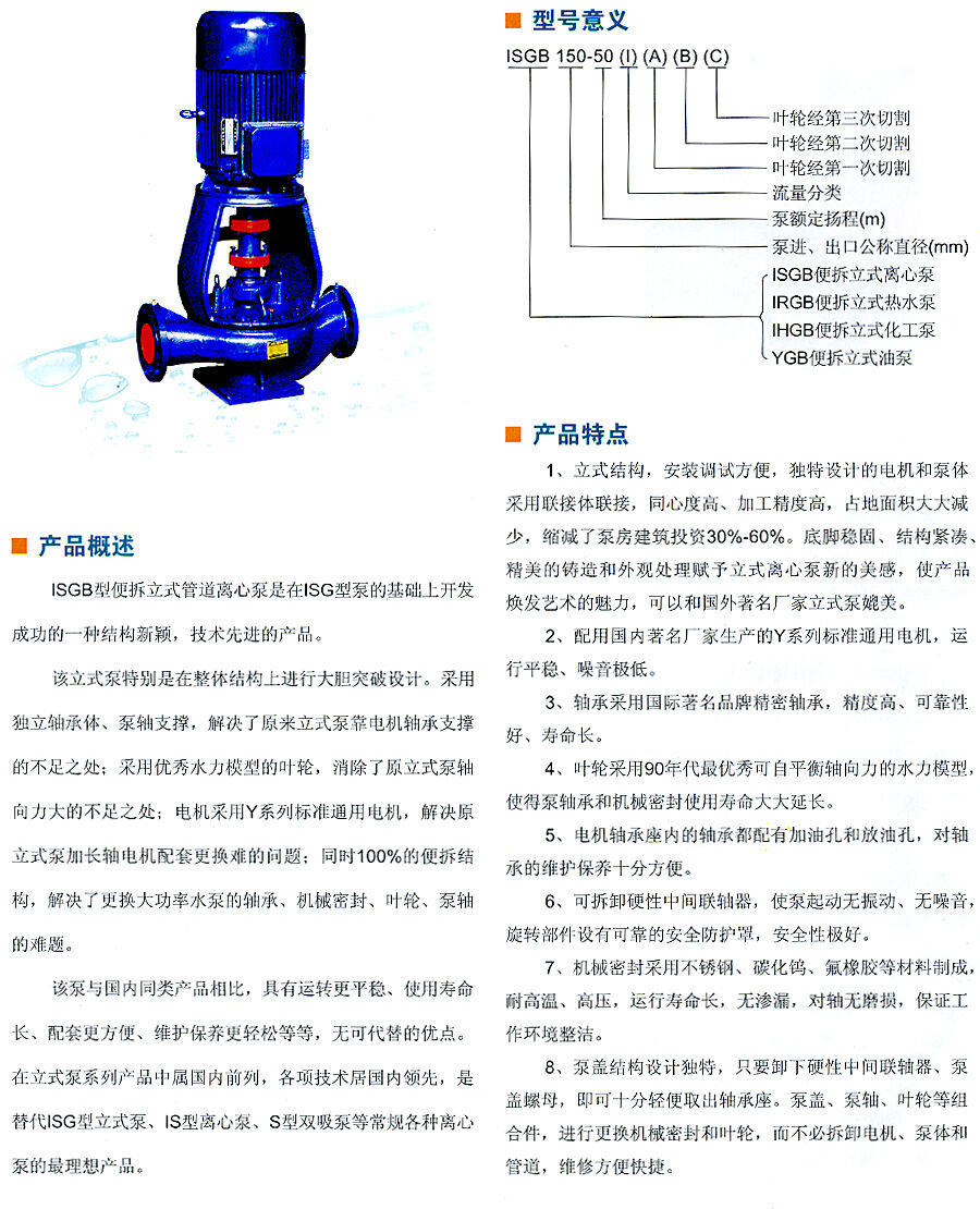 歸屬行業(yè):ISGB系列便拆立式管道離心泵