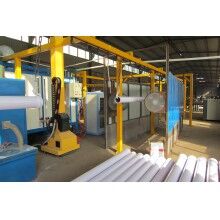 布料機(jī)專(zhuān)利設(shè)計(jì)的膠帶機(jī)頭部清掃器是為輸送混凝土清掃砂漿的特殊要求設(shè)計(jì)的。刮刀采用硬質(zhì)合金材料,矩型段面,耐磨且不傷膠帶,砂漿損失小。上料膠帶機(jī)設(shè)計(jì)為由兩節(jié)輕型桁架的鉸接結(jié)構(gòu),上端鉸接在車(chē)架上的轉(zhuǎn)料斗上,通過(guò)鉸接油缸根據(jù)需要調(diào)整兩節(jié)桁架之間的角度;在膠帶機(jī)的下部,設(shè)計(jì)有萬(wàn)向輪,在油缸的驅(qū)動(dòng)下可沿桁架軸向移動(dòng),可調(diào)整膠帶尾部的高度。