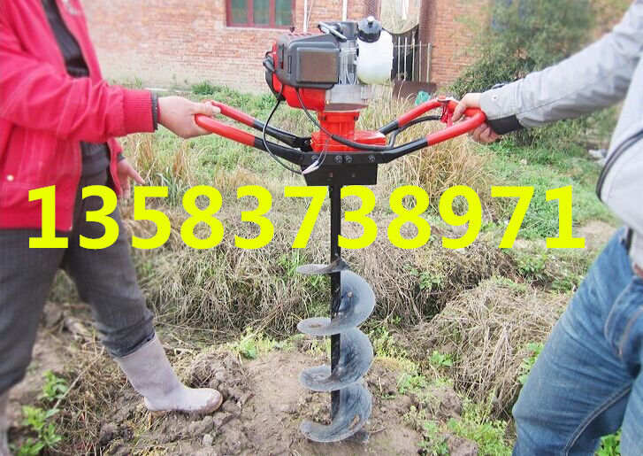 地鉆由小型通用汽油機(jī),齒輪箱及特殊設(shè)計(jì)的鉆具組成.適合在土地,凍土,冰層上打孔.廣泛用于園林,種植,植樹,物探,道路建設(shè)等領(lǐng)域  2.鉆頭采用錳鋼合成更加的堅(jiān)硬。對(duì)硬土質(zhì),超硬土質(zhì),粘土,凍土等都能工作。   3.地鉆可根據(jù)樹種,選配多種規(guī)格的鉆頭,以滿足用戶需要。 4.地鉆能夠讓人們從繁重的體力勞動(dòng)解放出來(lái),廣泛應(yīng)用于植樹造林,栽種果林、籬笆、及秋季給果樹施肥等。適合各種地形,效率高,便于攜帶及野外田地作業(yè)。   5.地鉆既可以單人操作,又可雙人操作,經(jīng)濟(jì)實(shí)用。   注意事項(xiàng):1.使用正品2T(二沖程)FC級(jí)機(jī)油,嚴(yán)禁使用4T(四沖程)機(jī)油。   2.嚴(yán)禁使用純汽油。   3.嚴(yán)格按251的比例兌油. 4.新機(jī)器不可高速使用,請(qǐng)低速磨合3小時(shí)。   5.嚴(yán)禁在高速的時(shí)候突然關(guān)停發(fā)動(dòng)機(jī),否則會(huì)使下次開機(jī)啟動(dòng)困難。   6.感覺機(jī)器震動(dòng)異常,請(qǐng)立即停機(jī)檢查,是否破損,松動(dòng),偏心。   7.嚴(yán)禁在有亂石堆的草地上使用。   8.鉆頭有嚴(yán)格的尺寸限制,嚴(yán)禁私自改裝或使用增大號(hào)鉆頭. 9.每工作一段時(shí)間清除火花塞、消音器積碳,清洗空氣濾清器,向齒輪箱加注黃油。   10.遇到問題自己無(wú)法解決的,不要私自拆裝。   11.機(jī)器長(zhǎng)時(shí)間不用時(shí),應(yīng)該將剩余的燃油倒出,然后發(fā)動(dòng)機(jī)器將化油器內(nèi)的燃油全部燃燒干凈。   12.想讓機(jī)器運(yùn)轉(zhuǎn)更穩(wěn)定,壽命更長(zhǎng)請(qǐng)經(jīng)常保養(yǎng)。   安全事項(xiàng):   A.人身安全:嚴(yán)禁在室內(nèi)添加汽油,嚴(yán)防火災(zāi);機(jī)器運(yùn)行時(shí),嚴(yán)禁手腳靠近鉆頭;清理或檢查機(jī)器時(shí)必須停機(jī)。   B.機(jī)器安全:地鉆起動(dòng)前必須清理草坪上的雜物,確保機(jī)器安全運(yùn)轉(zhuǎn)。