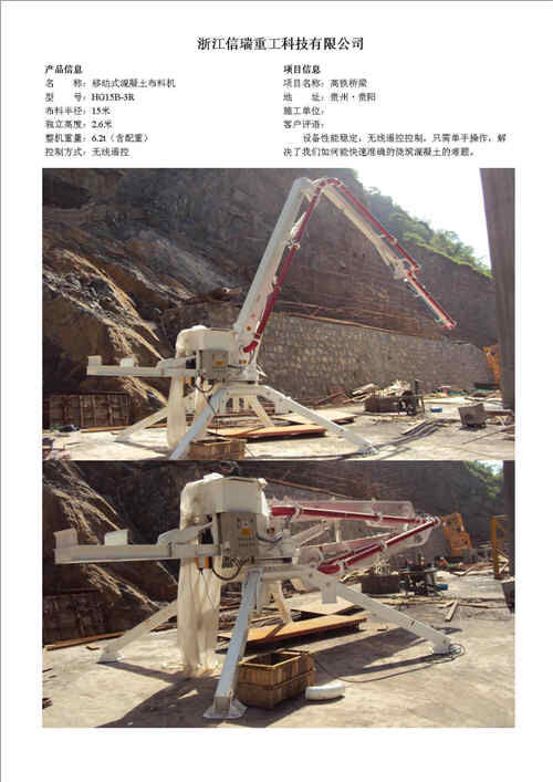 歸屬行業(yè):信瑞重工HG13A-3Z移動式液壓混凝土布料機(jī)