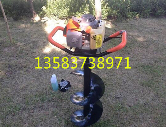 地鉆由小型通用汽油機(jī),齒輪箱及特殊設(shè)計(jì)的鉆具組成.適合在土地,凍土,冰層上打孔.廣泛用于園林,種植,植樹(shù),物探,道路建設(shè)等領(lǐng)域. 2.鉆頭采用錳鋼合成更加的堅(jiān)硬。對(duì)硬土質(zhì),超硬土質(zhì),粘土,凍土等都能工作。 3.地鉆可根據(jù)樹(shù)種,選配多種規(guī)格的鉆頭,以滿(mǎn)足用戶(hù)需要。 4.地鉆能夠讓人們從繁重的體力勞動(dòng)解放出來(lái),廣泛應(yīng)用于植樹(shù)造林,栽種果林、籬笆、及秋季給果樹(shù)施肥等。適合各種地形,效率高,便于攜帶及野外田地作業(yè)。 5.地鉆既可以單人操作,又可雙人操作,經(jīng)濟(jì)實(shí)用。 注意事項(xiàng):1.使用正品2T(二沖程)FC級(jí)機(jī)油,嚴(yán)禁使用4T(四沖程)機(jī)油。 2.嚴(yán)禁使用純汽油。 3.嚴(yán)格按25比1的比例兌油. 4.新機(jī)器不可高速使用,請(qǐng)低速磨合3小時(shí)。 5.嚴(yán)禁在高速的時(shí)候突然關(guān)停發(fā)動(dòng)機(jī),否則會(huì)使下次開(kāi)機(jī)啟動(dòng)困難。 6.感覺(jué)機(jī)器震動(dòng)異常,請(qǐng)立即停機(jī)檢查,是否破損,松動(dòng),偏心。 7.嚴(yán)禁在有亂石堆的草地上使用。 8.鉆頭有嚴(yán)格的尺寸限制,嚴(yán)禁私自改裝或使用增大號(hào)鉆頭. 9.每工作一段時(shí)間清除火花塞、消音器積碳,清洗空氣濾清器,向齒輪箱加注黃油。 10.遇到問(wèn)題自己無(wú)法解決的,不要私自拆裝。 11.機(jī)器長(zhǎng)時(shí)間不用時(shí),應(yīng)該將剩余的燃油倒出,然后發(fā)動(dòng)機(jī)器將化油器內(nèi)的燃油全部燃燒干凈。 12.想讓機(jī)器運(yùn)轉(zhuǎn)更穩(wěn)定,壽命更長(zhǎng)請(qǐng)經(jīng)常保養(yǎng)。 安全事項(xiàng): A.人身安全:嚴(yán)禁在室內(nèi)添加汽油,嚴(yán)防火災(zāi);機(jī)器運(yùn)行時(shí),嚴(yán)禁手腳靠近鉆頭;清理或檢查機(jī)器時(shí)必須停機(jī)。 B.機(jī)器安全:地鉆起動(dòng)前必須清理草坪上的雜物,確保機(jī)器安全運(yùn)轉(zhuǎn)。