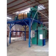 騰飛集團膩子粉生產設備年產兩到三萬噸左右的膩子粉生產設備,一般情況下會用到4-6個原料罐,其中兩個大罐用于裝放散裝水泥和粉煤灰,其余小罐用于裝放輕鈣、 重鈣、砂、小料等。散裝水泥和粉煤灰進罐不需要提升設備,依靠泵車打入。輕鈣、重鈣、砂、小料等需要使用斗式提升機提入小罐,巧妙的物料分配系統(tǒng)支持一個斗式提升機分配式作業(yè),從而避免了資源浪費。