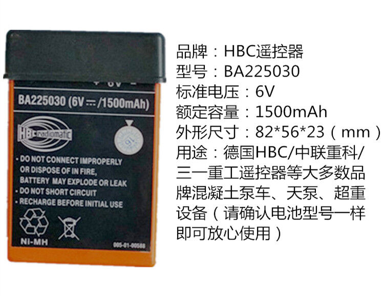 歸屬行業(yè):泵車配件 汽車泵配件 泵車遙控器電池 HBC電池HBC充電器 三一電池