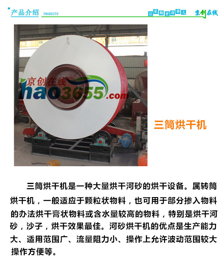 YHS6210三筒烘干機YHS6210在濕物料烘干設(shè)備系列產(chǎn)品中,回轉(zhuǎn)式三筒烘干機是在單筒回轉(zhuǎn)式烘干機基礎(chǔ)上改進的高效節(jié)能產(chǎn)品。經(jīng)多家企業(yè)、多個行業(yè)的應用,取得了良好的效果?;剞D(zhuǎn)式三筒烘干機改進了單筒原單筒烘干機內(nèi)部結(jié)構(gòu),增加入機前濕料的予烘干和延長濕料在機內(nèi)烘干時間,再加上密封、保濕以及合理的配套措施,使烘干機生產(chǎn)能力與原單筒式烘干機相比,提高50-80%,單位容積蒸發(fā)強度可達120-180kg/m3,標準煤耗僅為6-8kg/t。其技術(shù)先進、運行參數(shù)合理,操作簡單可行?!翱坪銠C械”制造的三筒烘干機筒體體內(nèi)根據(jù)用戶需求不同,內(nèi)部可以設(shè)計配備使用耐高溫材料隔溫,在進料端為防止倒料設(shè)有門圈及螺旋抄板。具有結(jié)構(gòu)合理,制作精良,產(chǎn)量高,能耗低,運轉(zhuǎn)方便等優(yōu)點。另外我公司的研發(fā)部門經(jīng)過多年的不懈努力,可將鍋爐尾氣做為三筒烘干機的供熱熱源,成功推出利用鍋爐廢氣烘干機。是供熱無投資,用熱無成本。真節(jié)能干燥,真正節(jié)能環(huán)保。可用于廣泛應用于各個行業(yè)的礦渣、粘土、煤、鐵粉、礦粉及其它混合材,建筑業(yè)的干混砂漿,黃砂等以及化工、鑄造等行業(yè)原材料烘干。
