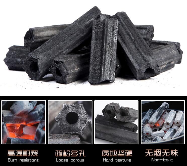 易燃速燃碳,無(wú)毒易燃碳呈壓制成中空的六棱形,從碳灰上就看出來(lái)含有煤的成份。一般常用汽油,助燃劑等其他方式點(diǎn)燃。