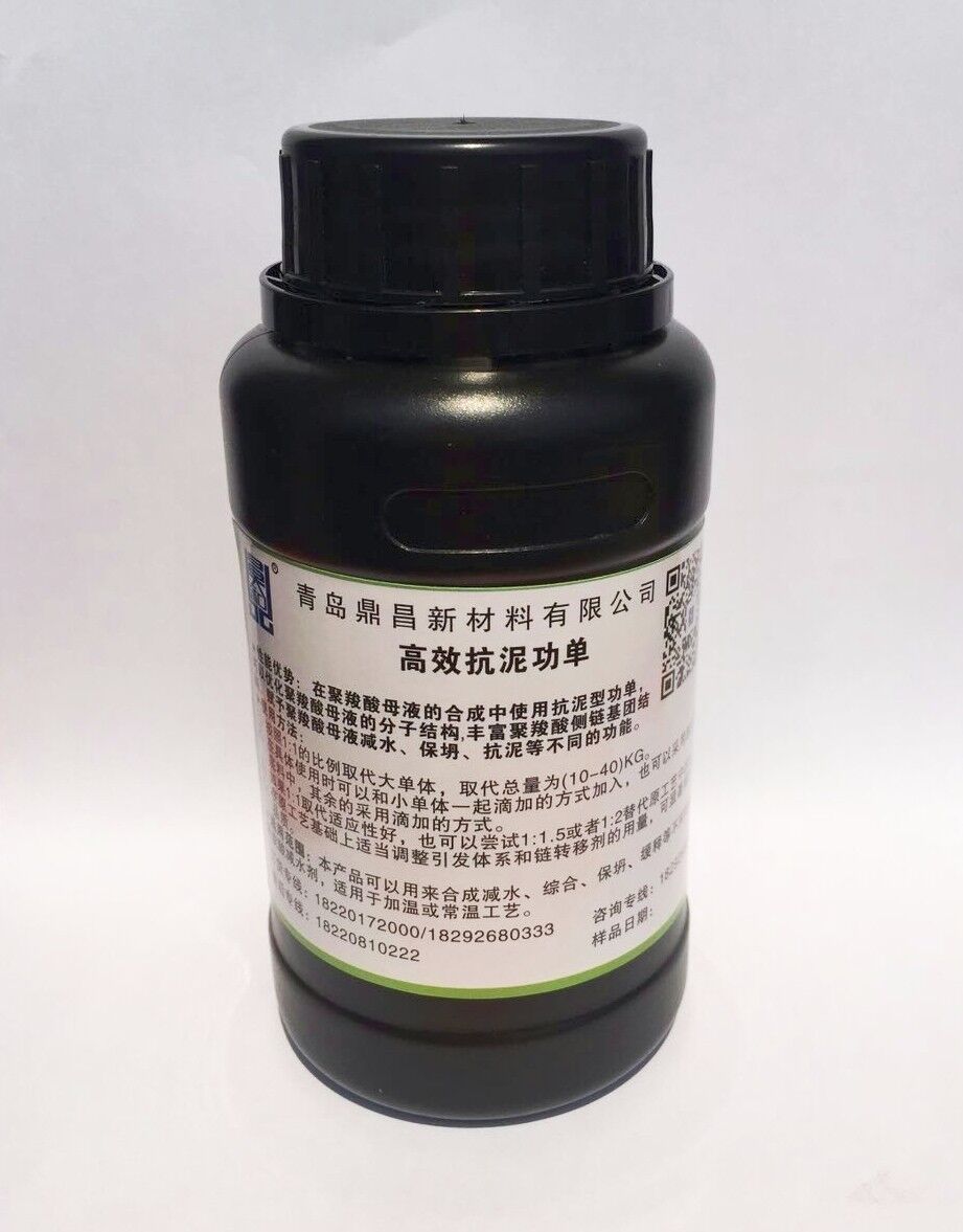 高效抗泥功單是青島鼎昌新材料有限公司獨(dú)立研發(fā)的一種應(yīng)用于聚羧酸母液合成的功能性單體。該產(chǎn)品是基于分子設(shè)計(jì)的理念,利用有機(jī)合成的技術(shù)合成的一種可用于自由基聚合的不飽和單體。它的分子結(jié)構(gòu)既不同于不飽和醇聚氧乙烯醚(大單體),又不同于丙烯酸、丙烯酸羥乙酯、甲基烯丙基磺酸鈉等小單體,它可以吸附在膠凝材料顆粒表面,起到“錨固”作用,也可以起到空間位阻的作用。xhudli$&159*