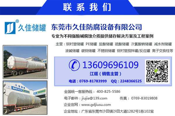 由于鹽酸具有強揮發(fā)性和腐蝕性,屬于危化品腐蝕介質,對于鹽酸儲罐的選擇應謹慎;選擇一個安全的儲罐廠家很重要。 東莞市久佳防腐設備有限公司生產資質健全,擁有國家頒發(fā)《?;钒b容器生產資質》,專業(yè)為不同行業(yè)用戶【酸堿鹽】腐蝕性介質儲存容器設計、解決方案。更多詳情請咨詢400-825-5586。