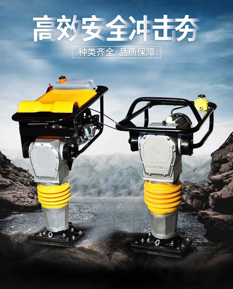 夯實力大、操作靈活、使用安全、適應(yīng)范圍廣、效率高等特點。但其夯錘面積有限,因此不宜用于大面積土方的夯實作業(yè)。對于砂土、礫石則需另選用震動搗固機(jī)予以搗實。