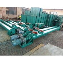 螺旋輸送機螺旋面的形式有實體螺旋(S制法)和帶式螺旋(D制法)兩種。各螺旋軸之間采用法蘭式聯(lián)接, 保證了聯(lián)接軸的互換性,便于維修。 螺旋輸送機機蓋為瓦片式并用蓋扣夾緊在機殼上,若需改進密封性能,用戶可自行在機蓋與機殼間加防水粗帆布。 螺旋輸送機進,出料裝置有進料口,方型出料口,手推式出料口,齒條式出料口四種,由用戶在使用現(xiàn)場在機體上開口焊接。布置螺旋輸送機進,出料口位置時應(yīng)注意保證料口至端部的距離,同時避免料口與吊軸承加油杯,機殼聯(lián)接法蘭,底座等相碰。