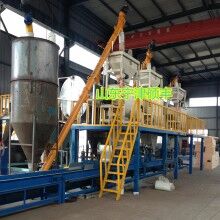 外墻保溫板設(shè)備又名水泥粉煤灰復(fù)合莢芯墻板設(shè)備”是以聚苯乙烯加粉煤灰、礦渣和外加劑等,復(fù)合而成的輕質(zhì)墻體板材?!八喾勖夯覐?fù)合莢芯墻板”主要生產(chǎn)工序包括,砂漿攪拌、砂漿鋪覆、復(fù)合玻璃纖維布、輥壓、鋪聚苯板、砂漿鋪覆、復(fù)合玻璃纖維布、輥壓成型、養(yǎng)護(hù)、脫模、切割、堆放等步驟。產(chǎn)品采用機(jī)械化流水線生產(chǎn)。