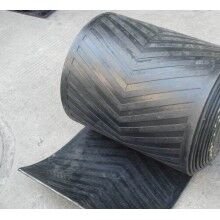 花紋輸送帶 是由工作面為花紋狀的覆蓋膠和非工作面為平面的覆蓋膠與帶芯構(gòu)成的傾角輸送帶。 花紋輸送帶?特點(diǎn):適用于傾角為0~40°物料的輸送,防止物料下滑。 ?花紋形式:人字型,凹坑型,U型,條狀花紋,粒狀花紋,扇形花紋 ?帶寬:300~800mm ?花紋高:5,10,15,20mm 注:花紋形狀可PP依用戶要求設(shè)計。 常用的花紋輸送帶詳解如下: 人字型花紋 特征:帶面上有高于帶體的“人”字型花紋,花紋可是開口也可是封閉的,每一種花紋又可分為高、中、低三種。 用途:適用于≤40度傾角的粉狀、顆粒狀、小塊物料輸送、也可輸送袋裝物料。 條狀花紋 特征:帶面上橫有高出帶體的條狀花紋,花紋分為高、中、低三種,每花紋按排列間距可分為疏、密等形式。 用途:適用于≤30度傾角的水平輸送包裝物。若在成槽情況下,可代替人字型花紋。 粒狀花紋 特征:帶面上有高出帶體或凹嵌入帶體的粒狀花紋,也可將凹坑制成方孔形或棱形和布紋形。 用途:凸粒狀花紋適用于軟包裝物或需有抓著力的物料輸送(如紙板箱)或無滑動輸送。 凹坑形粒狀花紋適用于≤45度傾角的粒狀物輸送。 扇形花紋