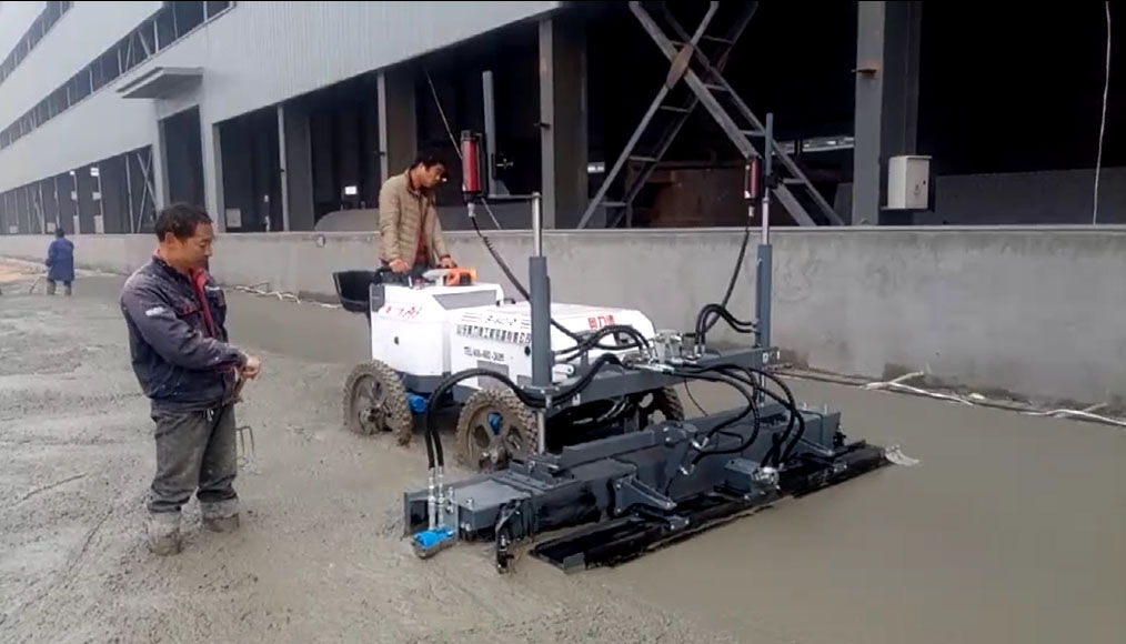由刮板、振動器、振動板、絞龍等部件組成,將攪拌、找平、震平、振搗,等多道工序整合到一起,由機(jī)器一次性完成。提高效率,節(jié)省人工。