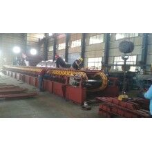 5、頭尾輪應采用優(yōu)質(zhì)鑄鋼件并經(jīng)良好的熱處理,應帶有張緊裝置。喂料倉與板喂機之間應設有溜槽,板喂機帶支架和支腿。