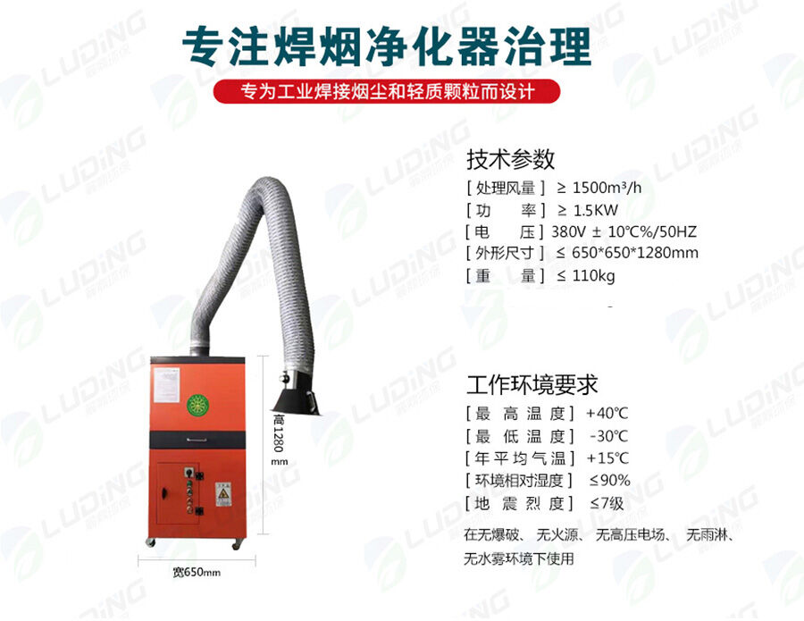 焊接煙塵又稱為電焊煙霧,是指焊接操作中經(jīng)常會(huì)產(chǎn)生一些有毒的物質(zhì)。如:乙醛、松香酸、異氰酸鹽、氮氧化物、硫化物、碳?xì)浠衔锏取:附訜焿m是一種十分復(fù)雜的物質(zhì),lans已在煙塵中發(fā)現(xiàn)的元素多達(dá)20種以上,其中含量多的是Fe、Ca、Na等,其次是SiAl、MnTi、Cu等。焊接煙塵中的主要有害物質(zhì)為Fe2O3、SiO2、Mao、HF等,其中含量多的為Fe2O3,一般占煙塵總量的35.56 ,其次是SiO2,其含量占1020 ,Mao520 左右。