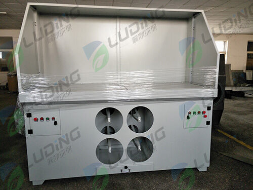 打磨除塵設(shè)備設(shè)計 ,四面排風(fēng),內(nèi)置式除塵系統(tǒng),風(fēng)機隔聲,無須管道連接,清潔后的空氣可在室內(nèi)循環(huán)排放,減少了能源開支。這種工作臺既能有效捕捉細小懸浮塵埃而又不干涉工人的移動和視野,它是中、小型精細加工、不規(guī)則部件的理想選擇它可與專門的煙塵凈化器連接,又可與集中式煙塵系統(tǒng)連接。