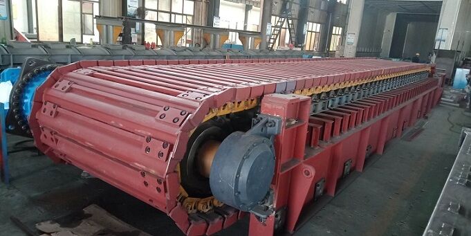 由于板喂機(jī)是通過(guò)鏈輪、鏈條、鏈板、傳動(dòng)等一系列全鋼結(jié)構(gòu)的剛性機(jī)架將物料拖出庫(kù)底的。所有的料倉(cāng)壓力由板式給料機(jī)承擔(dān),避免的由于料倉(cāng)壓力過(guò)大把皮帶秤壓壞現(xiàn)象。