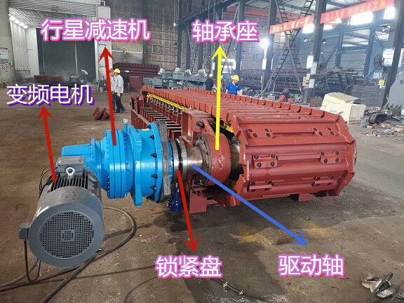 安裝在板式給料機(jī)出料端機(jī)架上的驅(qū)動(dòng)軸,被稱(chēng)為主軸驅(qū)動(dòng)裝置。