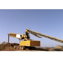 混凝土澆筑的快慢,一直是困擾建筑業(yè)施工周期的重要因素,根據(jù)不同的施工需求,可以選擇拖泵、車載泵或者是泵車來完成混凝土最后的澆筑工作。但是,目前來說,即便是大排量的混凝土泵車,其實際的泵送混凝土的速度也是有限的,而且按照現(xiàn)階段泵車的技術(shù)來說,要想提高其泵送速度也很難實現(xiàn)。針對這個問題,我公司研發(fā)的伸縮式混凝土布料機,就大大提高了混凝土的澆筑速度。其中60米長伸縮式移動布料機是國內(nèi)較大的履帶伸縮式皮帶輸送機。