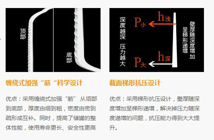 1)產品采用韓國進口高質量LLDPE作為產品生產原材料,生產出來的pe儲罐具有無毒、無味、耐酸、耐堿、耐沖擊、耐高溫、耐寒、不易老化等優(yōu)點。