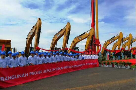 8月9日,在國務(wù)委員王勇和馬來西亞首相納吉布的見證下,由中國交建承建的馬來西亞東海岸鐵路開工儀式在彭亨州首府關(guān)丹舉行。該項目是目前中國企業(yè)海外在建的最大工程,也是“一帶一路”倡議下最大的單體建設(shè)項目。儀式上,三一的混凝土泵車、挖掘機(jī)、旋挖鉆機(jī)、起重機(jī)等大型機(jī)械設(shè)備集體亮相,備受各方矚目。