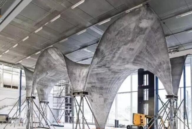 據(jù)了解,工程師們在打造過程中并沒有采用定制、一次性的木頭或泡沫支架,而是使用了他們自己設(shè)計的一種新技術(shù)。一張鋼索網(wǎng)被拉伸到想要的形狀,然后再在上面放置聚合織物形成一個靈活的模板。之后形狀可以通過算法控制,它能將力均勻地發(fā)布在各鋼索間并決定每個部分所需要的混凝土量。之后,鋼索網(wǎng)可以被拆掉、重復(fù)使用和重新調(diào)整。