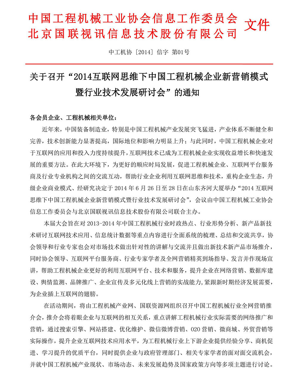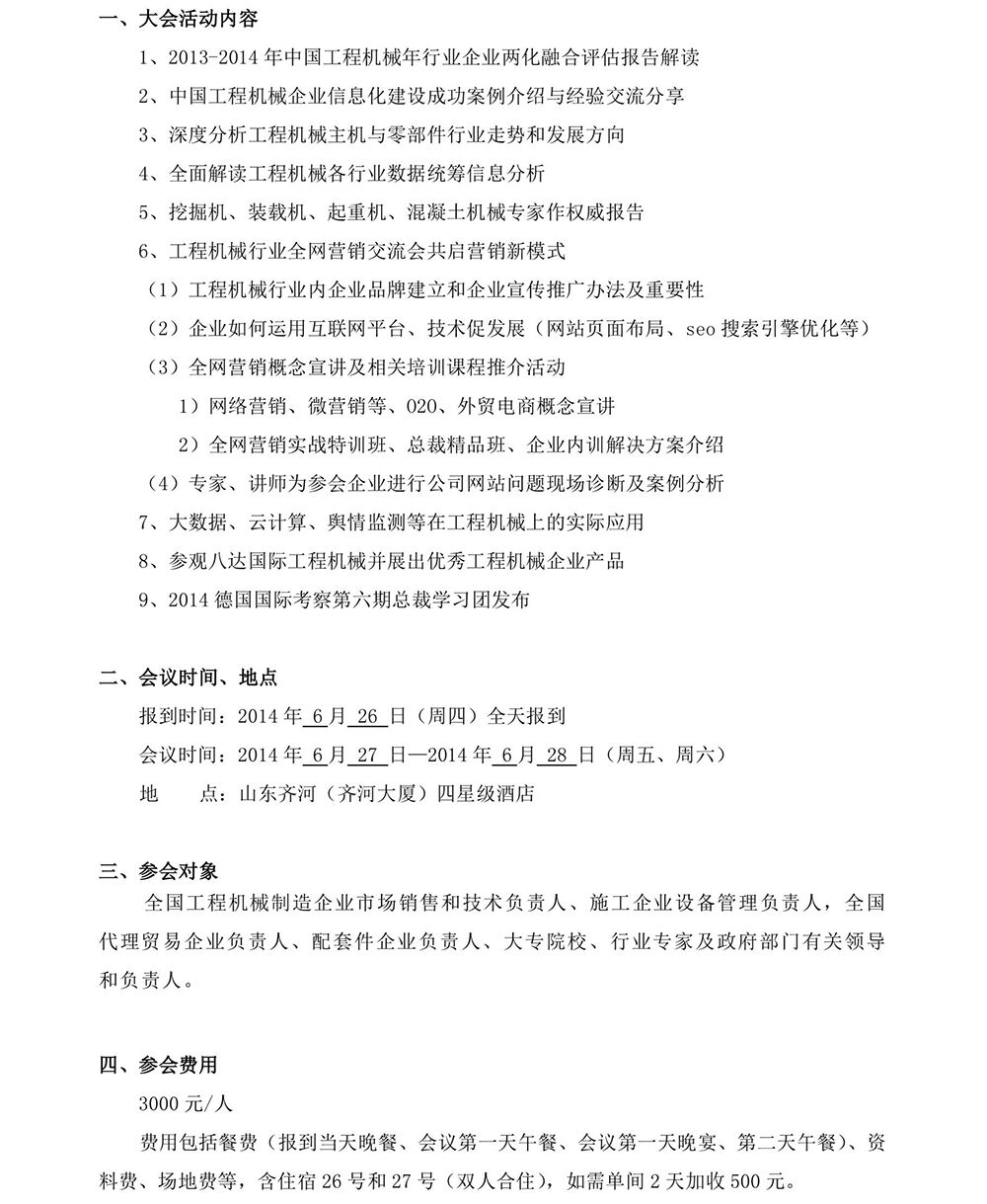 關(guān)于召開“2014互聯(lián)網(wǎng)思維下中國工程機械企業(yè)新營銷模式暨行業(yè)技術(shù)發(fā)展研討會”的通知